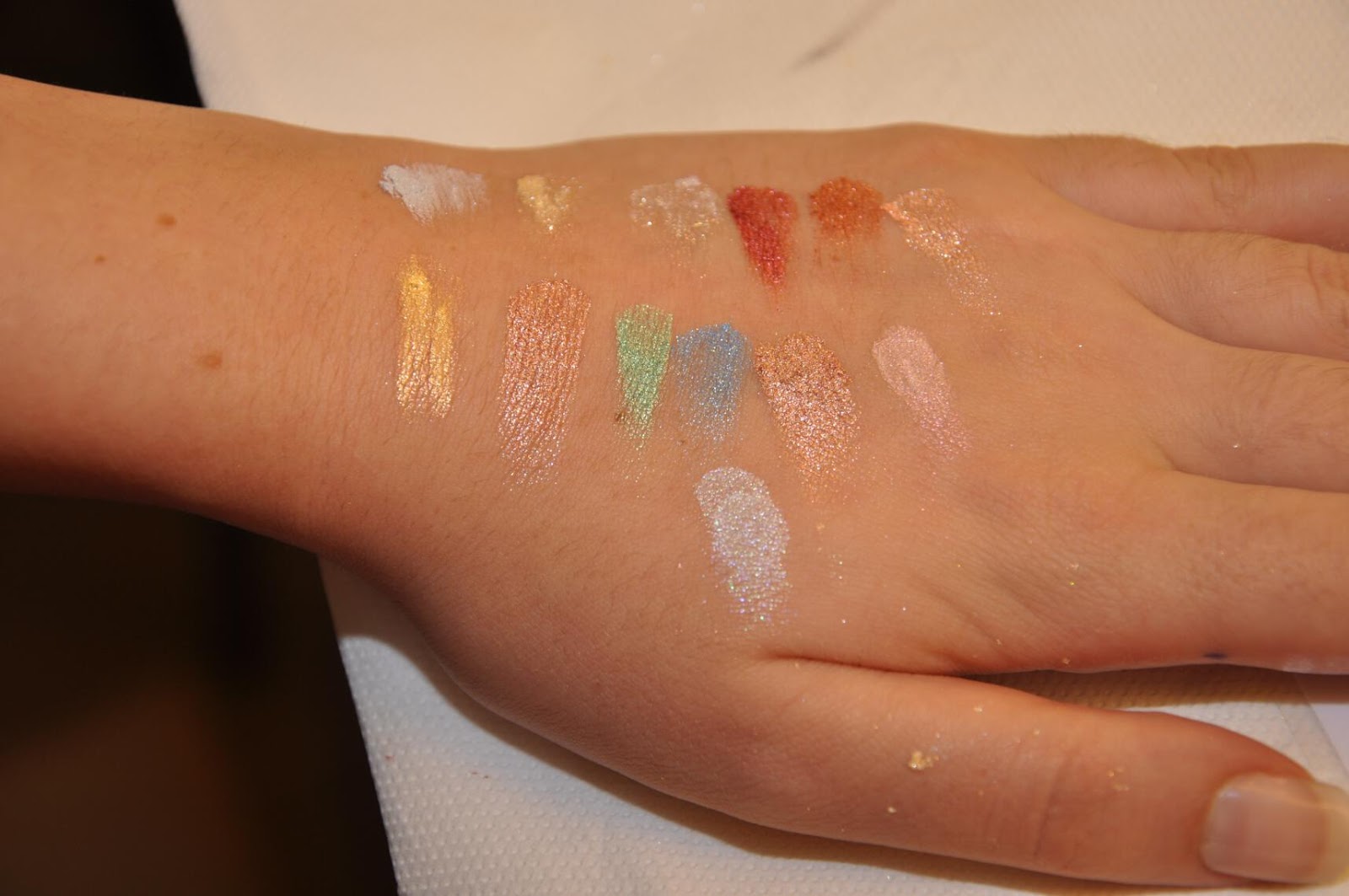 de la stanga la dreapta randul de sus avem pigmentii:ice green(ps11)blue(ps09)ice pink(ps04)turqouise(ps08)silver(ps02)ice gold(ps13)